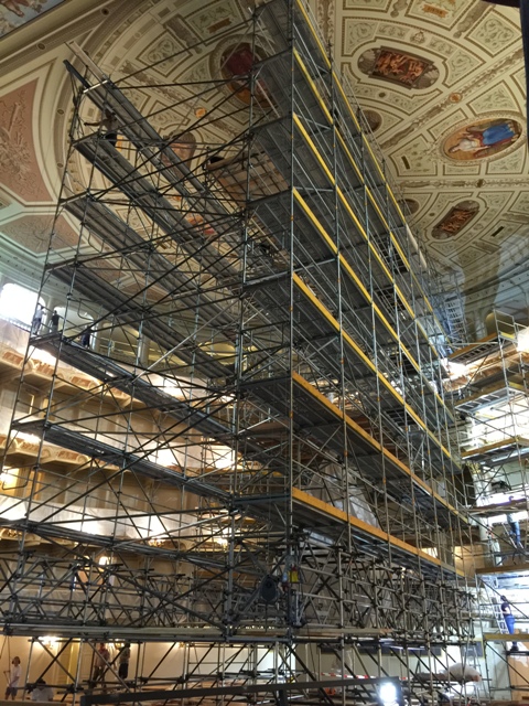 Stahl-Rohr Gerüstkonstruktion W09, H1, GLG III, nach Statik zum Bearbeiten der Decke und der Mittelloge,