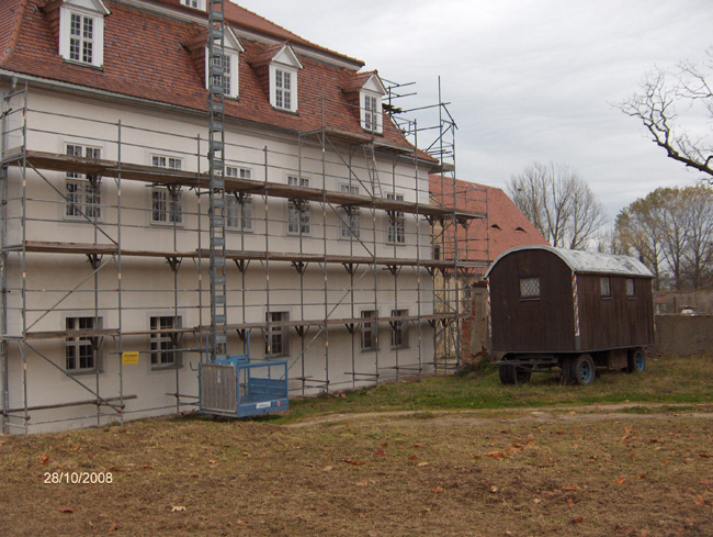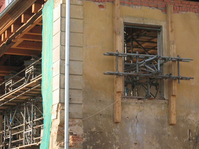 Schloss Berthelsdorf Traggerüste, systemungebundene Raumgerüste, Fassadengerüste, Lastenaufzug Zurück Weiter